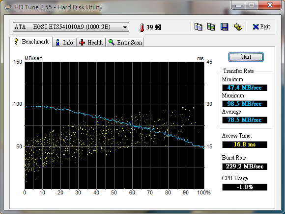 出廠配置的Hitach 2.5" 1TB (5400RPM 8M buffer):